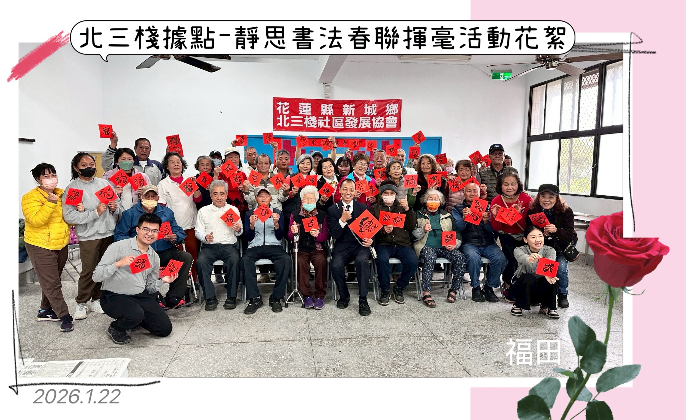 花蓮榮家主任游文勇表示,春聯不僅是過年期間的重要象徵,更承載著對新年的期盼與祝福。藉由揮毫活動,讓住民重溫傳統年節記憶,感受到榮家對住民身心關懷的用心。同時,主任感謝書法老師們長期支持公益活動,撥冗蒞臨榮家揮毫,讓藝術成為連結人心、傳遞溫暖的重要媒介。將持續結合在地藝文資源規劃多元文化活動,豐富住民生活內涵,讓住民在安心生活的同時,也能感受到社會的陪伴與祝福,為新的一年揭開充滿希望與幸福的序幕。