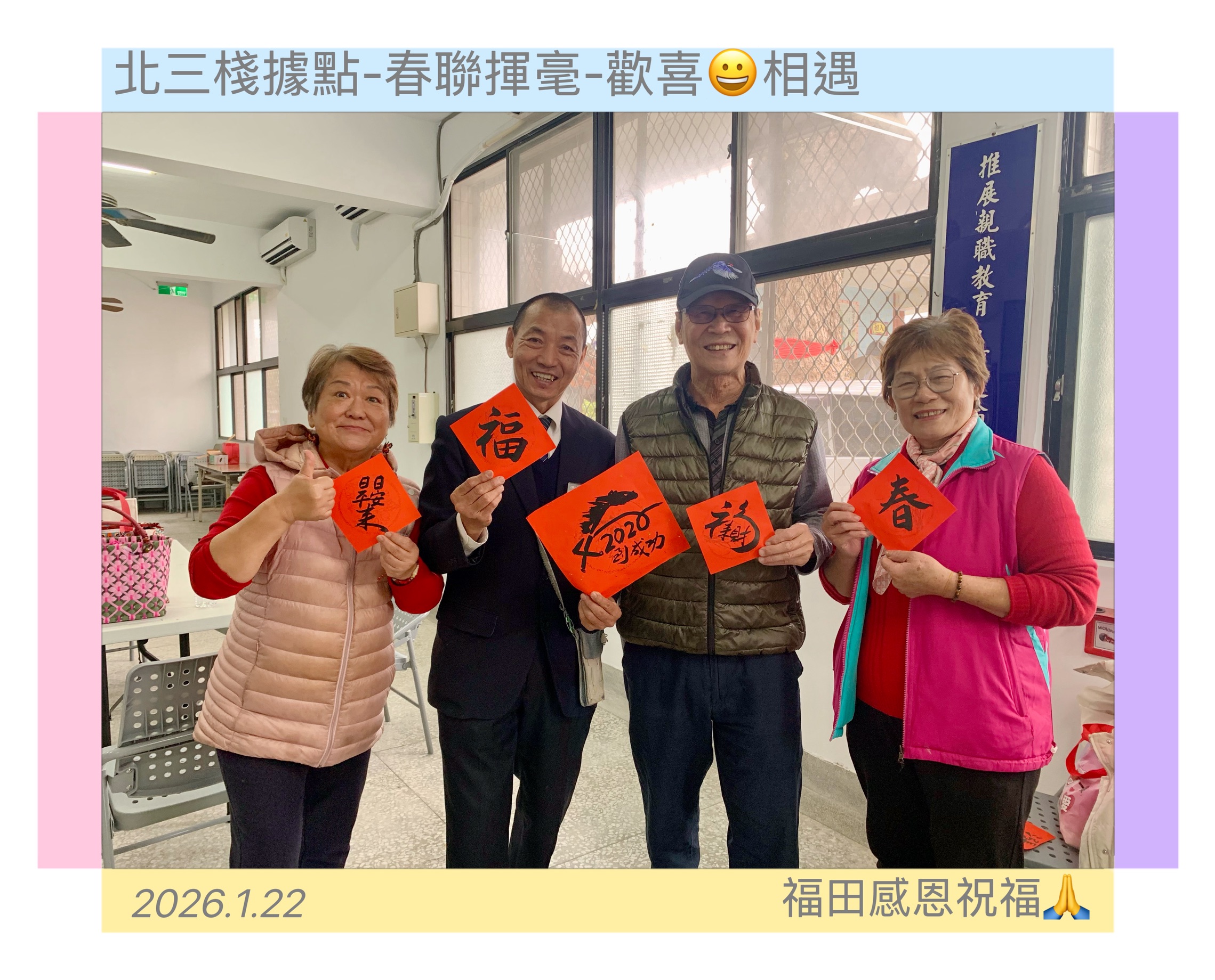花蓮榮家主任游文勇表示,春聯不僅是過年期間的重要象徵,更承載著對新年的期盼與祝福。藉由揮毫活動,讓住民重溫傳統年節記憶,感受到榮家對住民身心關懷的用心。同時,主任感謝書法老師們長期支持公益活動,撥冗蒞臨榮家揮毫,讓藝術成為連結人心、傳遞溫暖的重要媒介。將持續結合在地藝文資源規劃多元文化活動,豐富住民生活內涵,讓住民在安心生活的同時,也能感受到社會的陪伴與祝福,為新的一年揭開充滿希望與幸福的序幕。